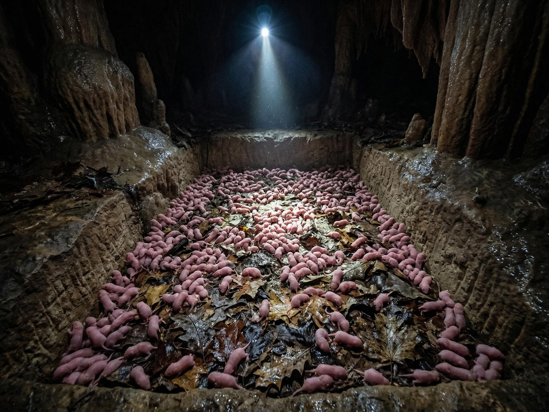 There are mammals that are way more efficient at digesting cellulose than cows. Rodents are extremely good at extracting nutrition from leaves, bark and rotting wood.In the Altai taiga biome, voles are one of the main detritivores, forming the base of a food chain that feed even the majestic golden eagles and the famed Altai falcons that nest in the Sayan mountains.This gave me an idea. Farmed voles could provide an alternate way to convert leaf detritus into easily digestible proteins. They breed fast, and as long as you feed them, form a reliable supply of meat.Voles, farmed in the darkness over millennia in a warm, damp pit inside a cave would gradually lose their fur and eyes, and end up looking like new-born mice. Pill bugs would eat their droppings and any leaf remains the voles leave behind.